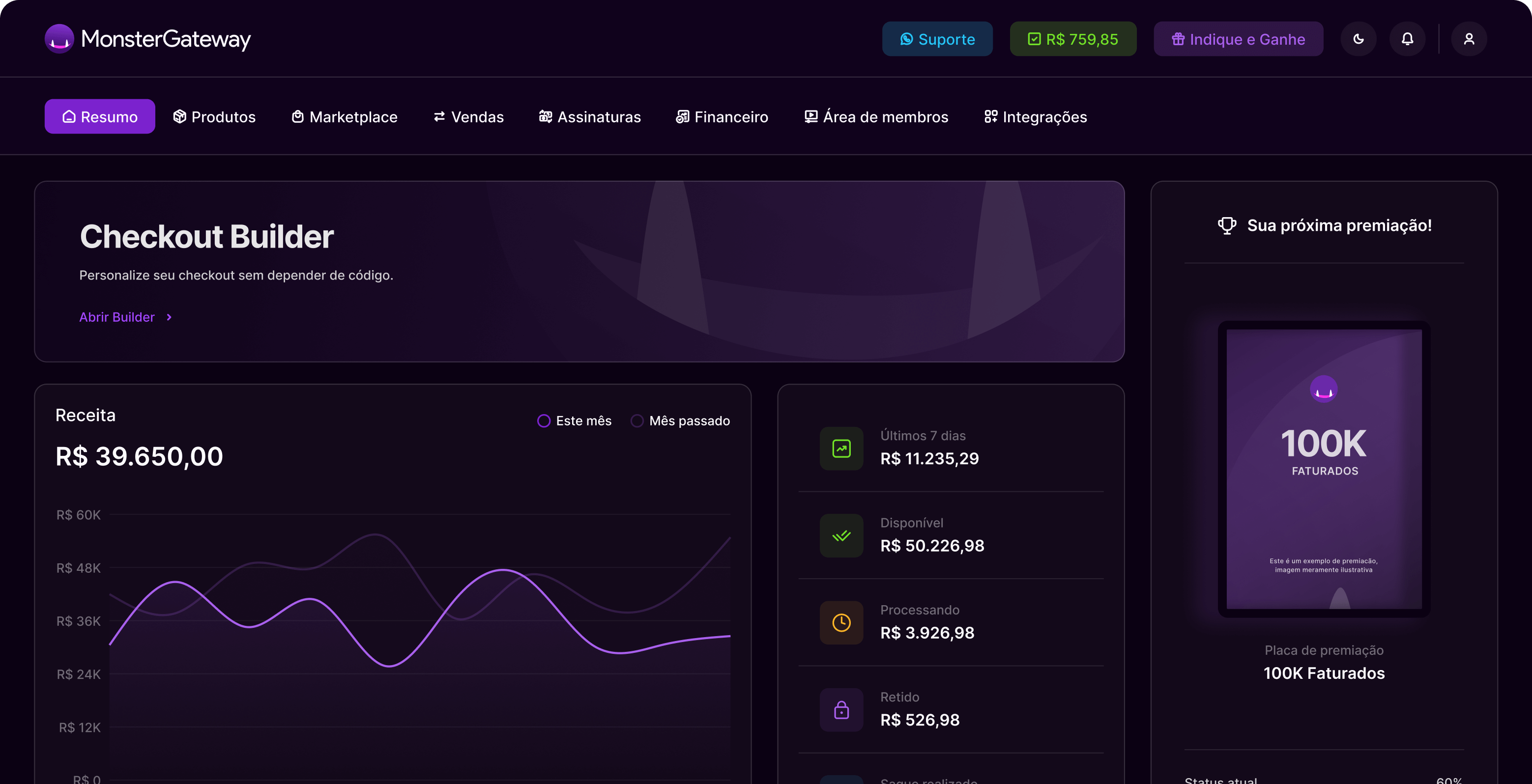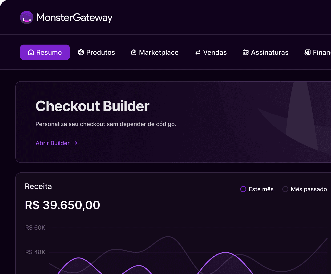 Com a MonsterGateway, você pode personalizar sua plataforma com sua própria marca e definir suas próprias taxas e margens de lucro, garantindo total controle e maximização dos seus ganhos.