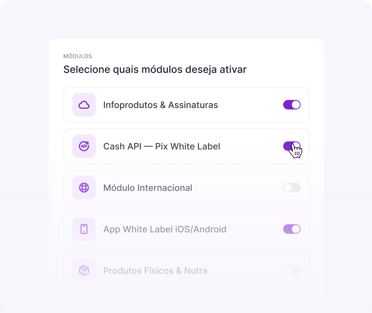 A mesma infraestrutura configurada para diferentes operações, com regras, taxas e estratégias ajustadas a cada vertical.