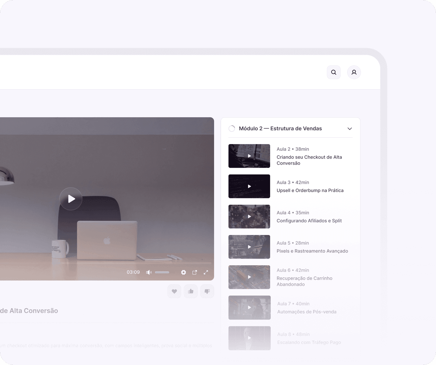 Cursos, mentorias, comunidades e assinaturas com área de membros.