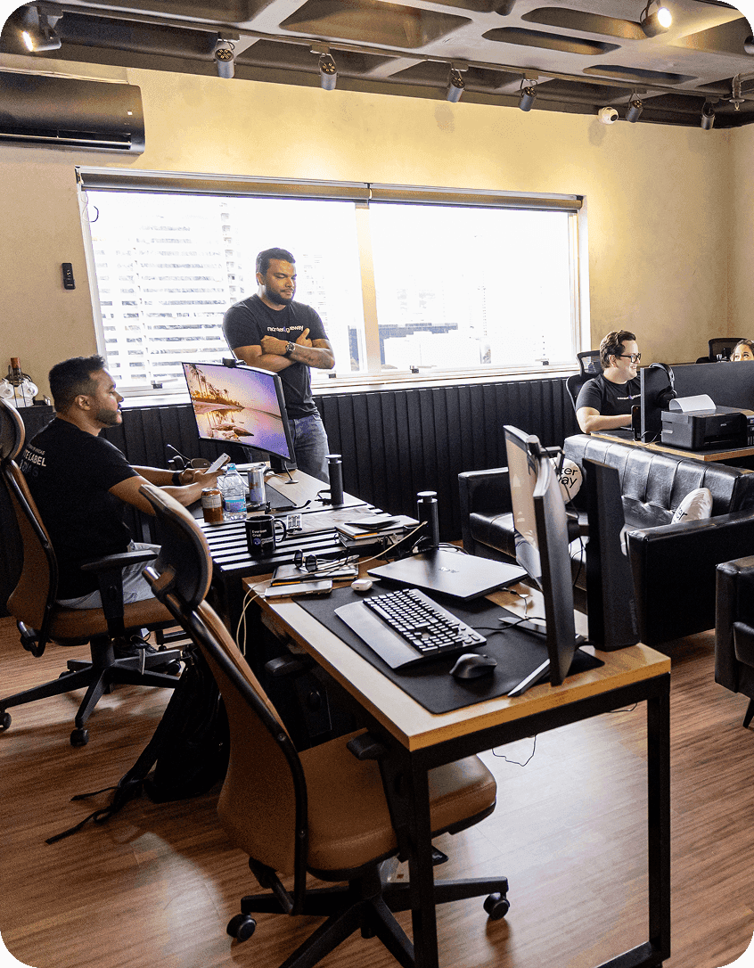 Nossa equipe de tecnologia opera remotamente entre Brasil e Europa, garantindo presença internacional e diversidade de talentos.